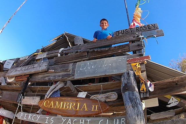 He was particularly impressed with the A-Frame literally packed to the rafters with memorabilia left behind by the crews of thousands of cruising boats to mark their visit to this bay so high on most sailors ‘must do’ list. To Kristian it was a huge cubby house full of ‘really cool stuff’. He had a ball exploring every nook and cranny before inviting himself to assist one of the visitors who was building a fire in the pit in preparation for barbecuing their dinner.  Suffice to say there was no shortage of wood added to ensure the fire built would have been capable of cooking an ox. Following our foray onto the beach, we all turned in for an early night after dinner on board ready for a full day of activity on the morrow.