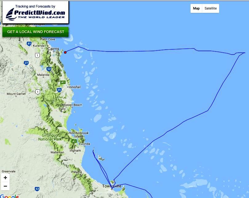 | Our Predictwind tracker updated every hour to show our meanderings through the Coral Sea. |
